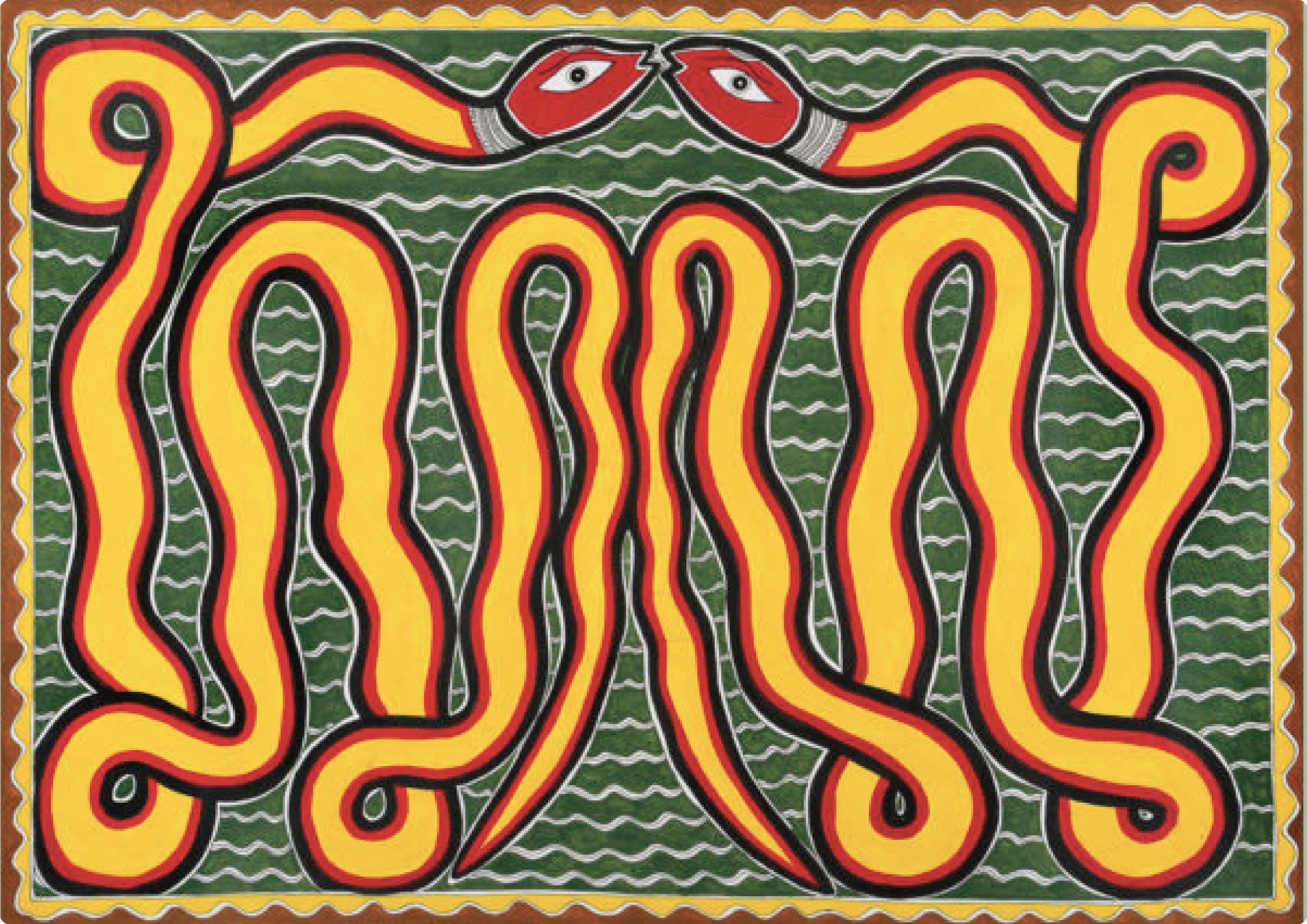 Indian art has long paid tribute to the snake’s presence, capturing its mystery and duality—sacred yet earthly, feared yet revered. From ancient temple sculptures to intricate miniature paintings, from tribal motifs to architectural details on stepwells, the snake appears in countless forms, always hinting at the endless cycle of life, death, and regeneration.